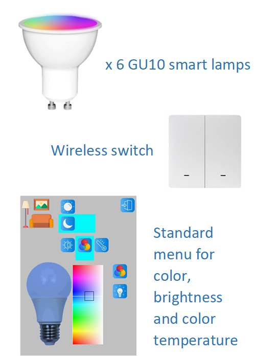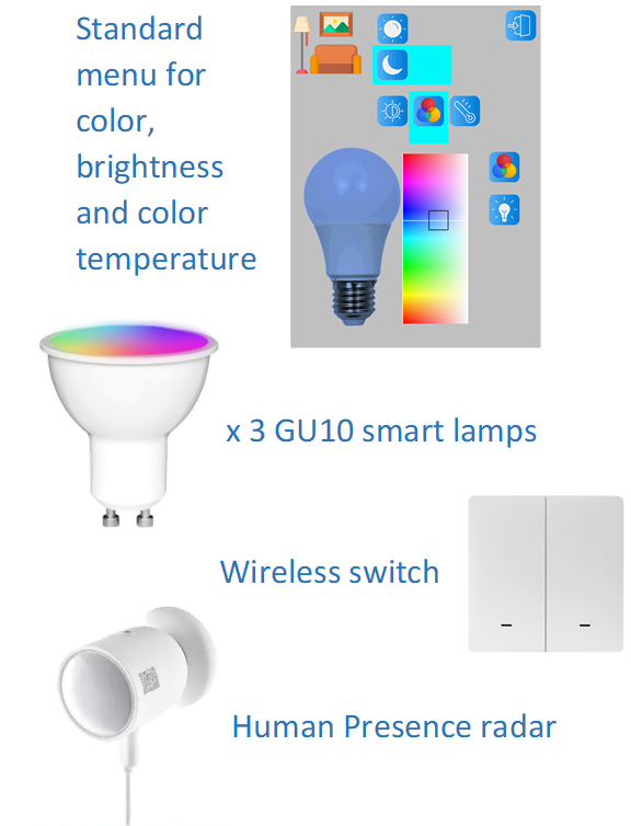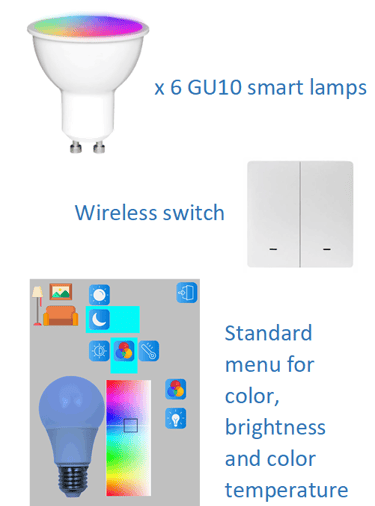 Что входит в этот комплект «Автоматизация освещения в гостиной»: