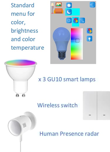 Что входит в этот комплект «автоматизации освещения в спальне»: